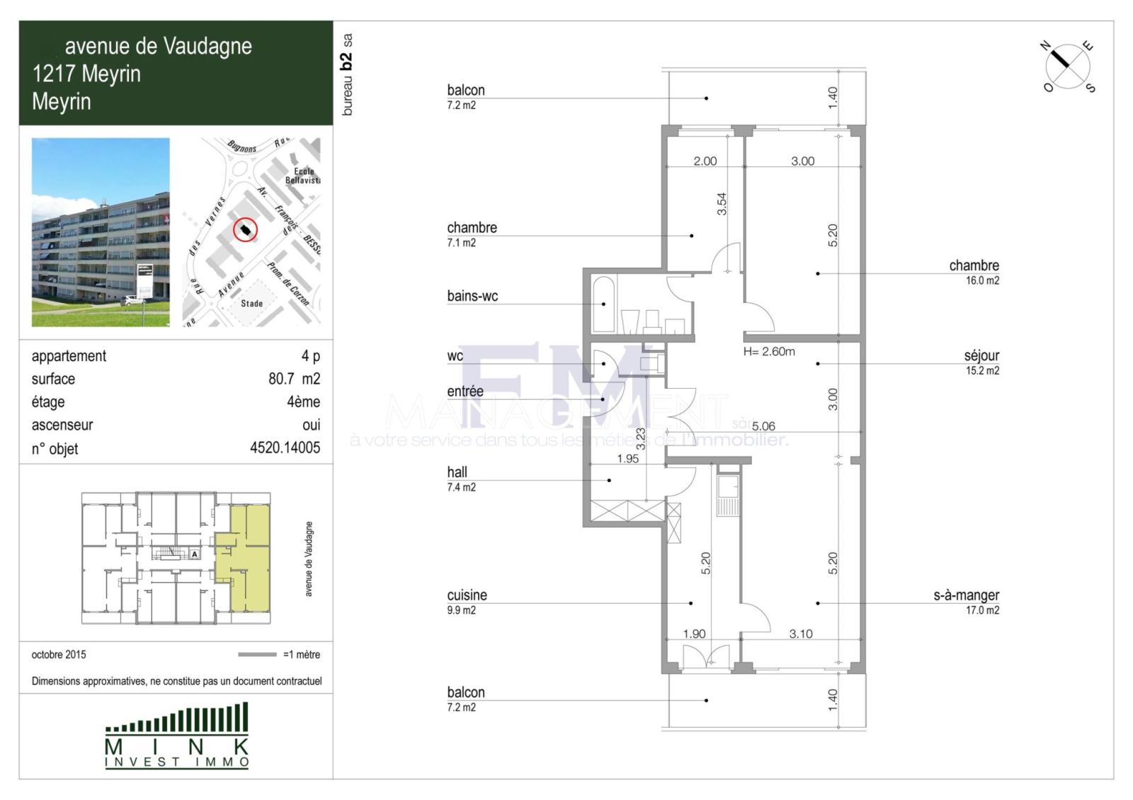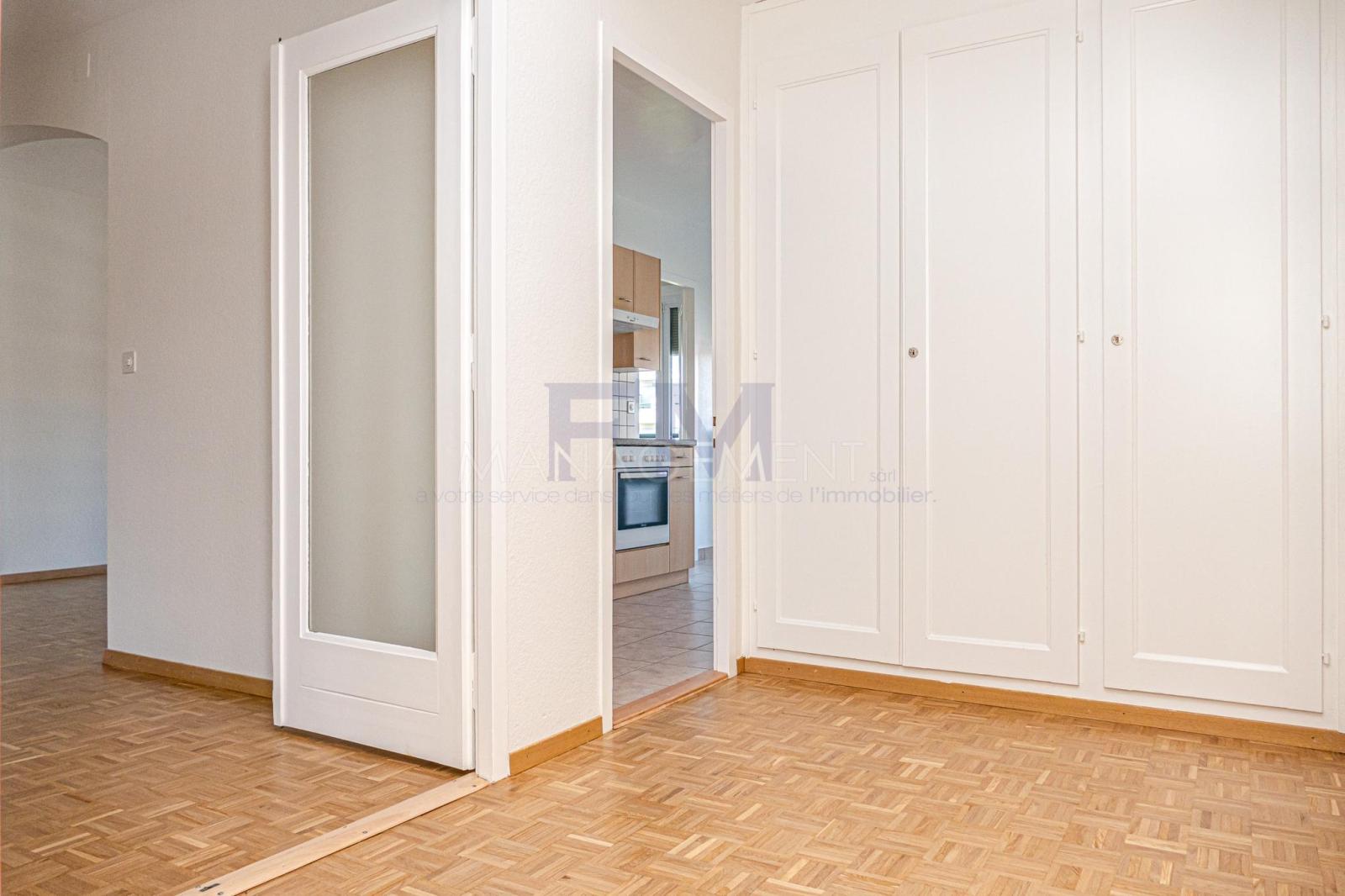 Located in the town of Meyrin, close to shops and public transport, beautiful 4-room apartment of approximately 81 m2 on the 4th floor of a secure building.