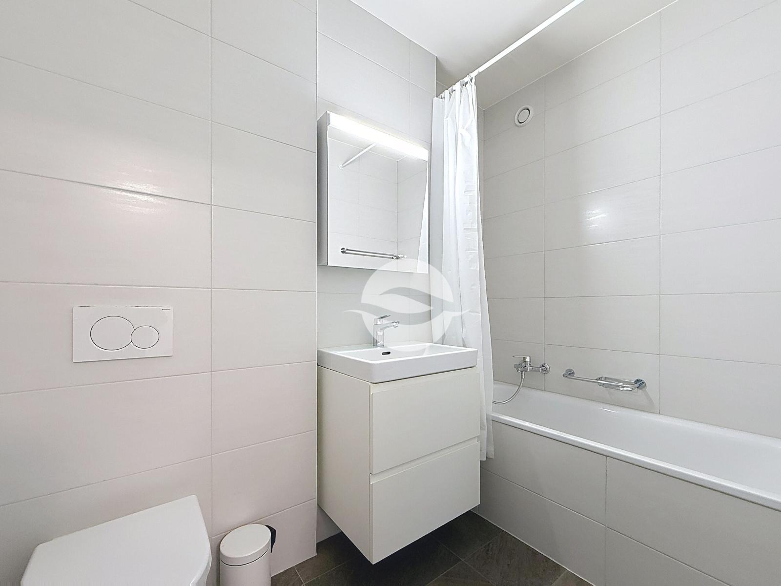 - Bathroom with shower and equipped laundry area
