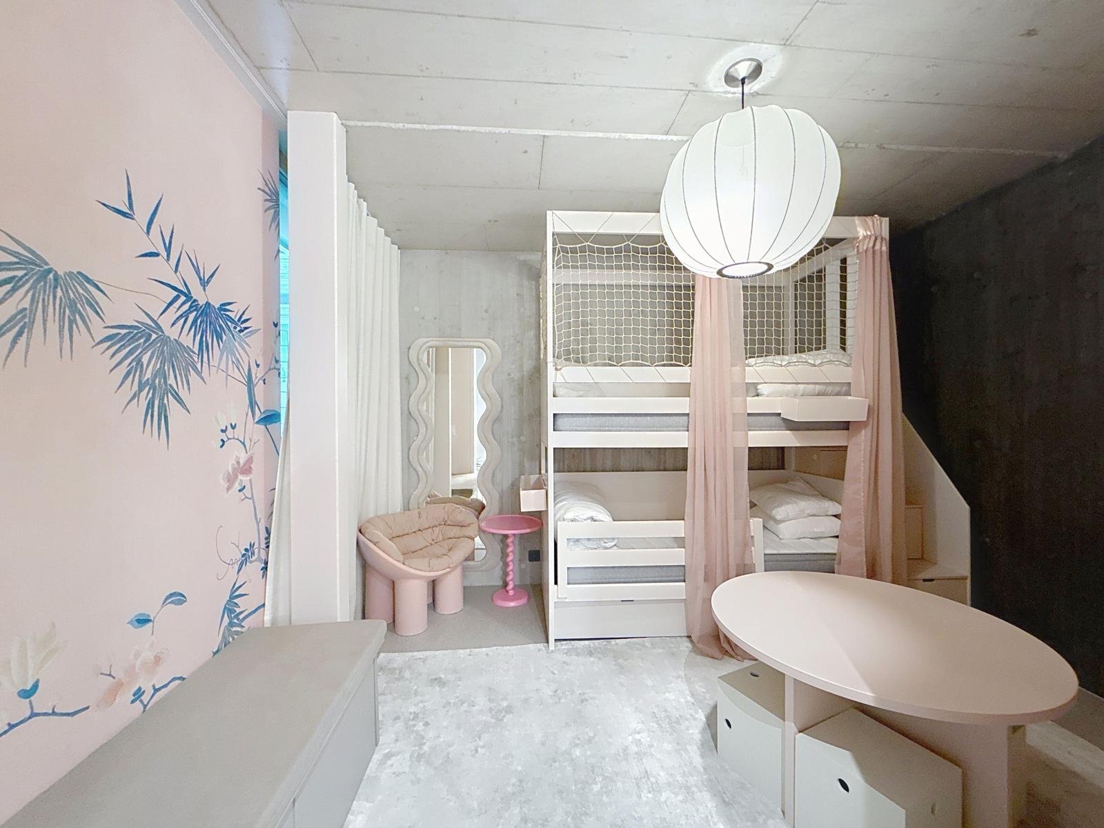 - Bedroom with bunk beds and large wardrobes