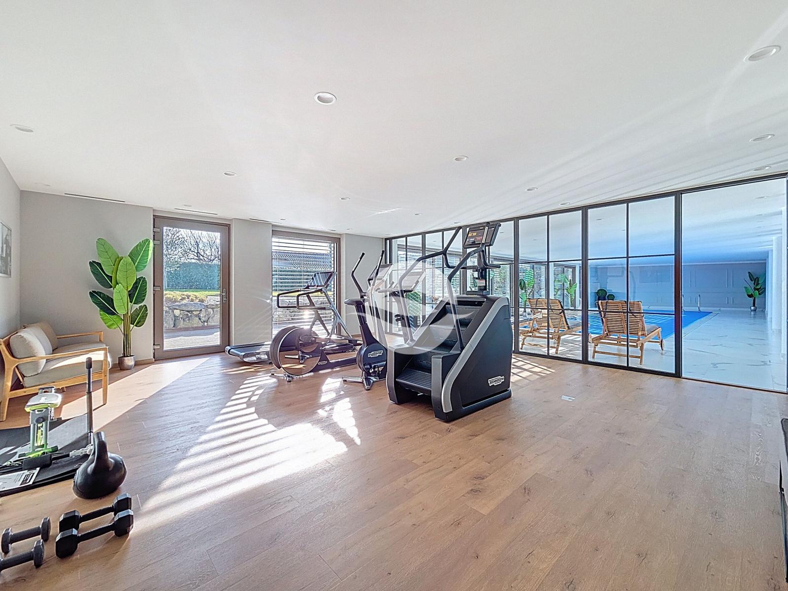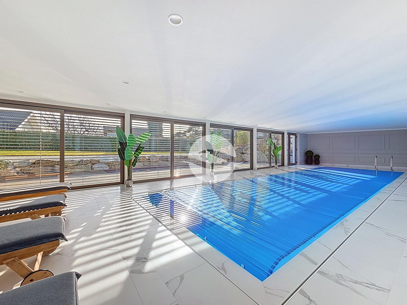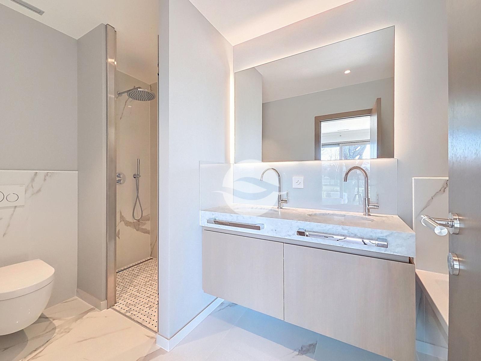 Located within a prestigious residence comprised of two buildings totaling only four apartments, this spacious 4.5-room apartment of approximately 160 m² is tastefully furnished and ready to welcome those who appreciate discretion and high-end amenities. The residence boasts a wellness area dedicated to the comfort of its residents, including a fitness room, an indoor swimming pool, and a hammam with changing rooms and restrooms, all with direct access to a large terrace and a pleasant landscaped garden.