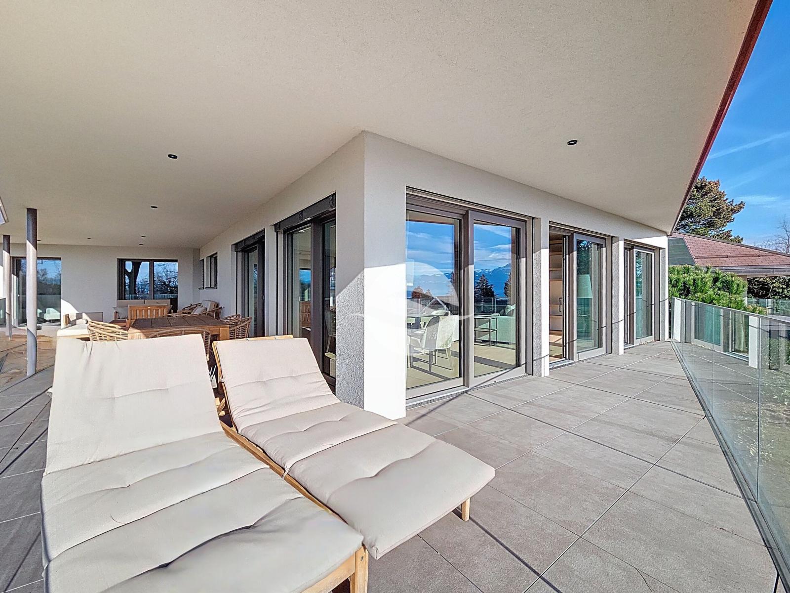 - A large south-facing terrace, offering a superb view of Lake Geneva and the Alps