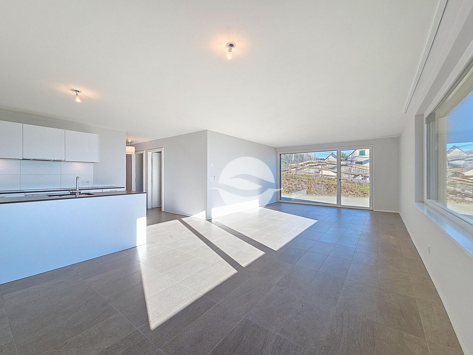 Located in the "L'Oasis" residence, built in 2022, this beautiful 4.5-room apartment, approximately 110 m², will guarantee you a real crush! Situated on the ground floor of a 5-unit building, it offers generous volumes, beautiful outdoor spaces and an incredible lake view.