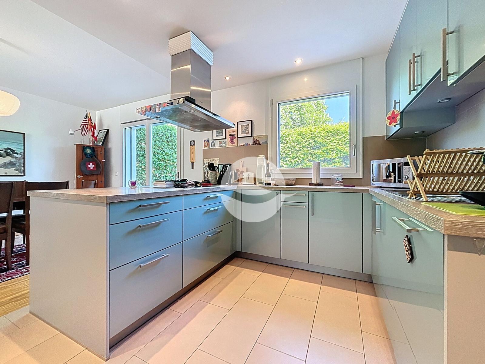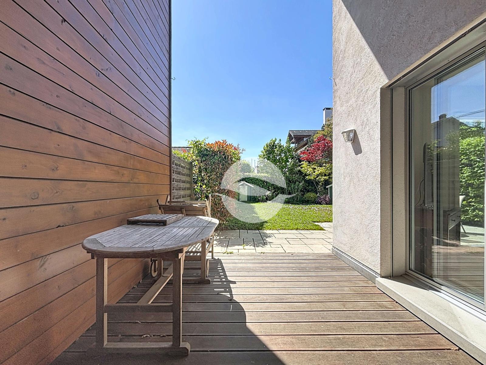 Located in Confignon, in a recently built residential area, this magnificent semi-detached villa enjoys a pleasant location close to various bus and tram lines, allowing you to easily reach the town center while also enjoying the pleasures of the countryside with its walks and wide open green spaces. Comfortable and functional, the villa is ideal for a family, with its three-level layout offering bedrooms with terraces, a fenced garden, multi-purpose rooms, and a carport for two cars.