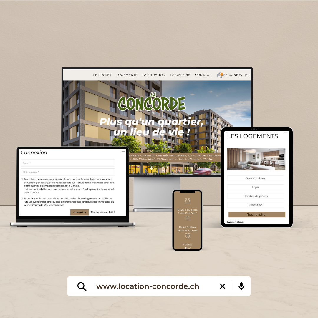 Located in a quiet, leafy neighbourhood of Vernier, La Concorde offers 77 modern apartments ranging from 2.5 to 6 rooms. Each home is designed for comfort, light and functionality, with well-appointed spaces and loggias or terraces for enjoying the outdoors.